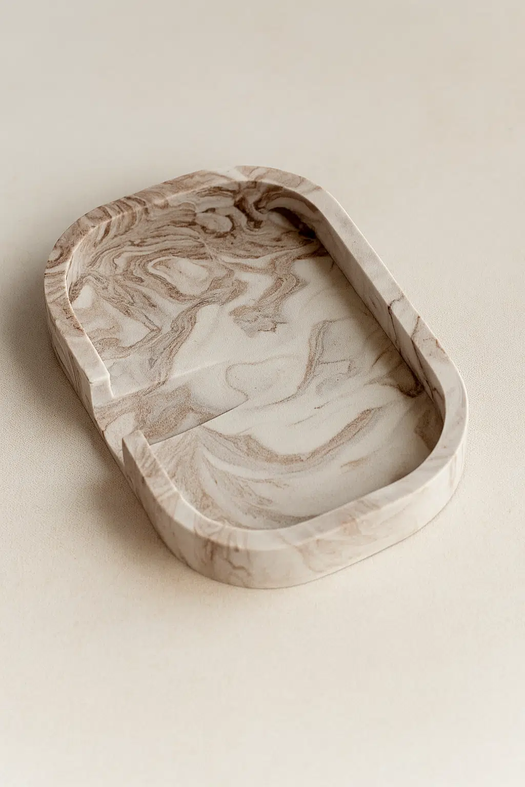 Adoptez dès maintenant ce porte savon marbré: un objet artisanal, durable et raffiné qui met en valeur vos cosmétiques solides tout en décorant subtilement votre espace bien-être.